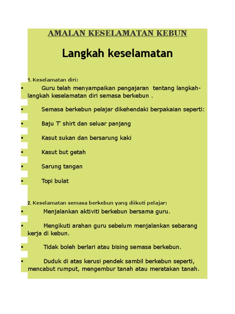 Amalan Keselamatan Di Kebun Pdf